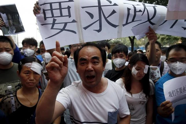 Một người biểu tình cho biết ông đã phải đi vay gần 125.000 USD để mua một căn hộ cho gia đình gần khu vực vụ nổ. Thế nhưng, vụ nổ với đây vào ngày 12-8 tại Thiên Tân đã làm cho tòa nhà nơi anh ở bị nghiêng.