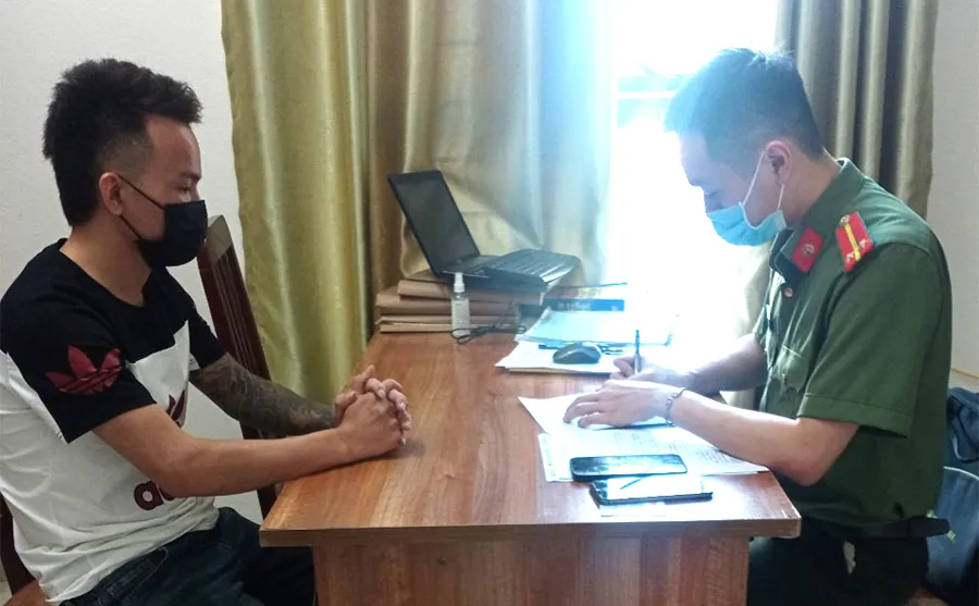 Công an TP Thanh Hóa làm việc với Nguyễn Văn Luân về hành vi đăng tải thông tin sai sự thật. Ảnh: CACC