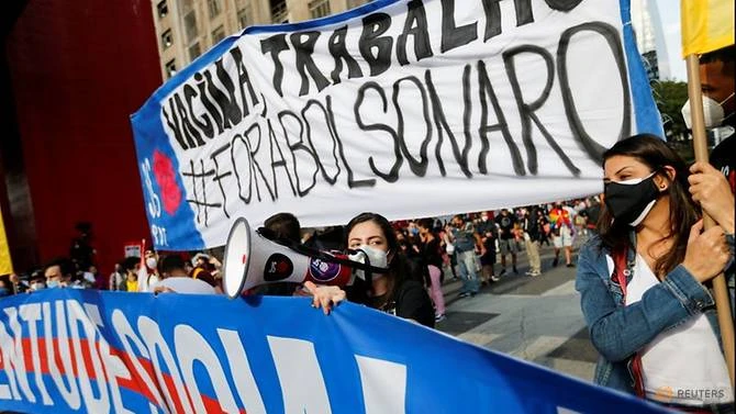 Người dân Brazil đã đổ xuống đường biểu tình yêu cầu luận tội Tổng thống Jair Bolsonaro trước cáo buộc ông có hành vi "tham nhũng" khi đặt mua vaccine ngừa COVID-19. Ảnh: REUTERS