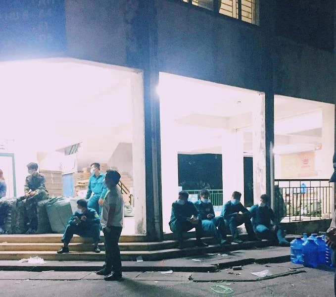 Giây phút nghỉ ngơi của lực lượng làm nhiệm vụ ở khu cách ly ĐH Quốc gia TP.HCM. Ảnh: VI LÊ