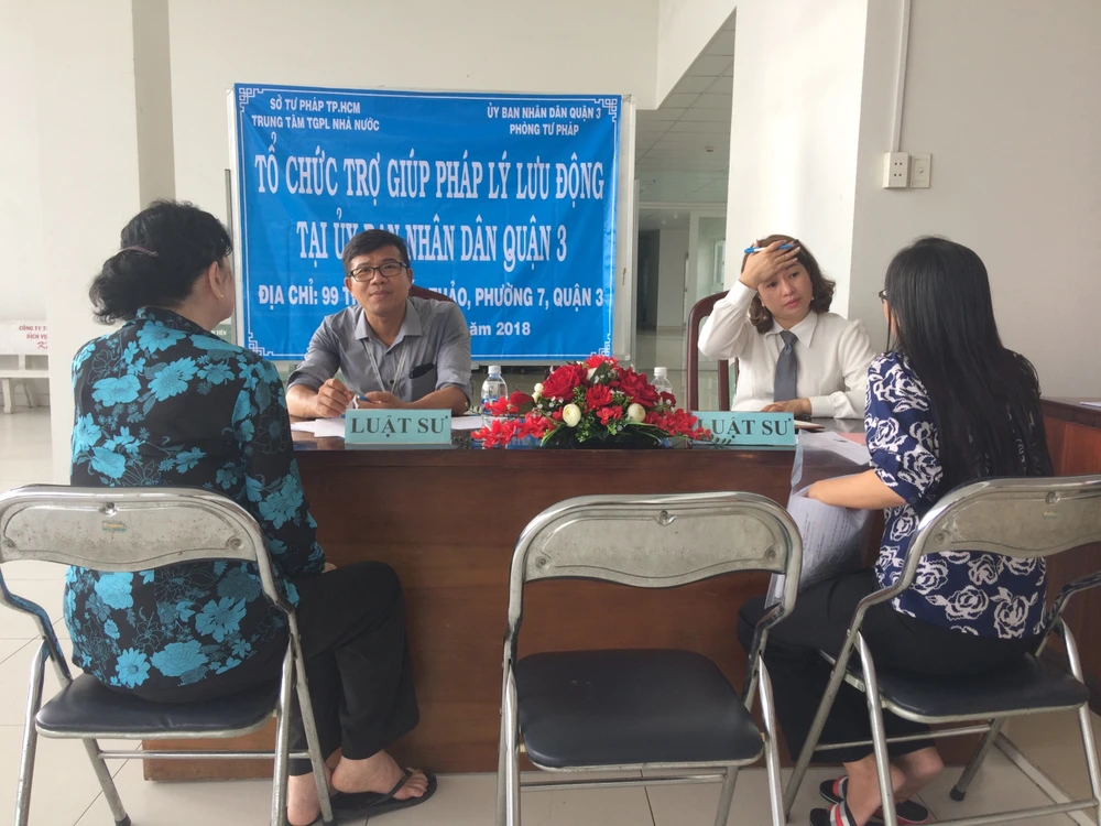 Vì vậy tại hội nghị, các luật sư, trợ giúp viên của Trung tâm Trợ giúp pháp lý TP.HCM đặt bàn tiếp nhận và tư vấn miễn phí, giải đáp các thắc mắc pháp lý cho người dân trên địa bàn quận 3.
