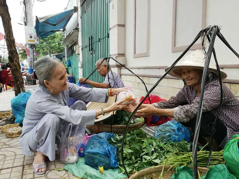 Sau mỗi giờ ăn, có cụ tất tả đi năn nỉ bán từng tờ vé số hay có cụ cần mẫn xe nhang, lặt hành tỏi, lặt cuống ớt… đắp đổi qua ngày. Mỗi cụ lại trông chờ đến thứ Ba, thứ Sáu hằng tuần để được ăn bữa cơm của người dưng và cùng chia sẻ chuyện đời.