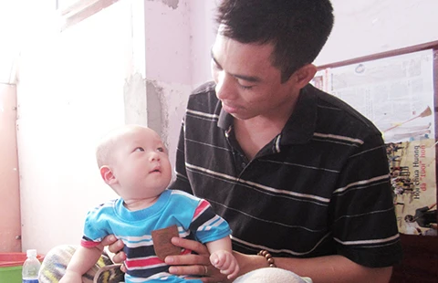Người cha trẻ Nguyễn Thanh Sơn nuôi hy vọng sống từng ngày để cùng đi tiếp với con trai mình trong cuộc đời này. Ảnh: LÊ THOA