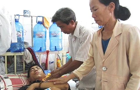 Nhập viện được ba tháng nay nhưng sức khỏe anh Sơn ngày càng yếu dần đi. Gác lại mọi công việc, ông Khoa vào bệnh viện để chăm sóc anh. Trong ba lô của ông, ngoài quần áo ra còn có cả gói thuốc lớn mà bác sĩ yêu cầu ông phải dùng hằng ngày. Ông nói với chúng tôi giọng the thé, không mở được hết khẩu hình miệng: “Bệnh tim của tôi giờ chỉ còn cách phẫu thuật để thay van nhưng nào có tiền, phải chăm cho thằng Sơn trước đã, nó còn trẻ, còn vợ con, còn cả tương lai phía trước chứ tôi thì đã già rồi”.