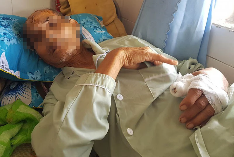 Ông Tám được đưa đi cấp cứu với tình trạng đa chấn thương, mất máu nhiều. “Trước đây, chính vợ chồng con trai cùng thằng cháu của tôi đã trói tay chân tôi lại rồi đánh đập vì cho rằng tôi chia đất cho con cái không đúng” - ông Tám kể.