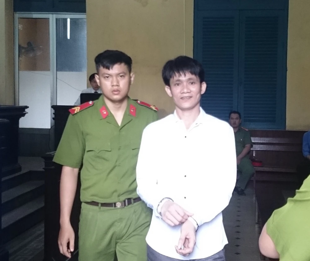 Bị cáo Tâm đang bị áp giải ra xe.
