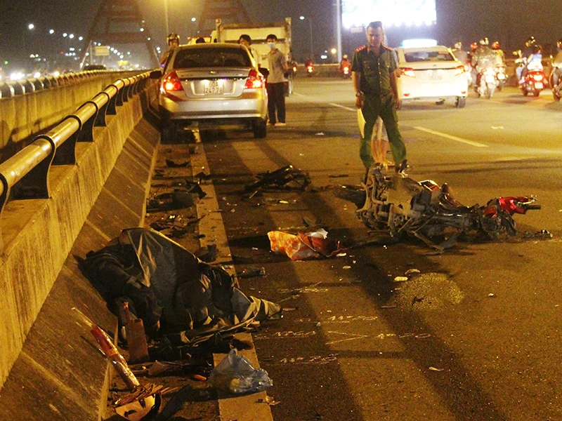 Hiện trường vụ tai nạn trên cầu Bình Lợi. Ảnh H. Tâm.