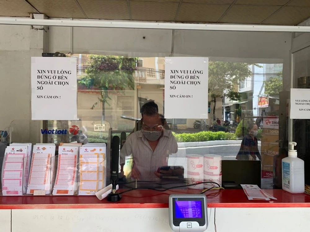 Vietlott đã trở lại và không quên trang bị đầy đủ khẩu trang và nước sát khuẩn để phục vụ các khách hàng.