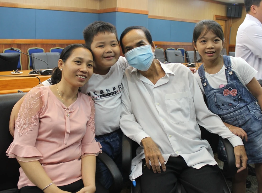 Anh V. cùng vợ và các con vui mừng sau ca ghép gan thành công. Ảnh: HL