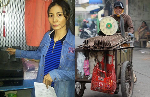 Bà Ngọt bên chiếc loa cũ của người chồng để lại. Hằng ngày chị Hồng vẫn mua ve chai. Ảnh: ÁI NHÂN