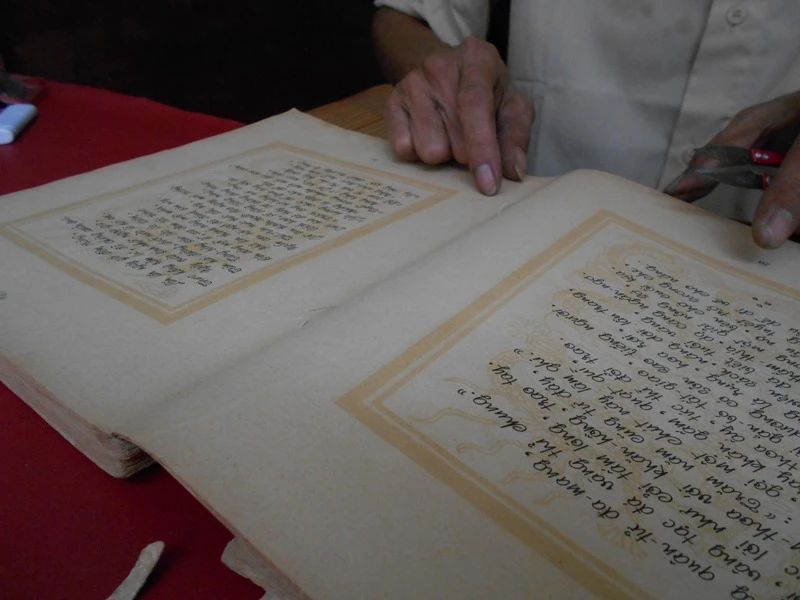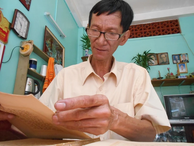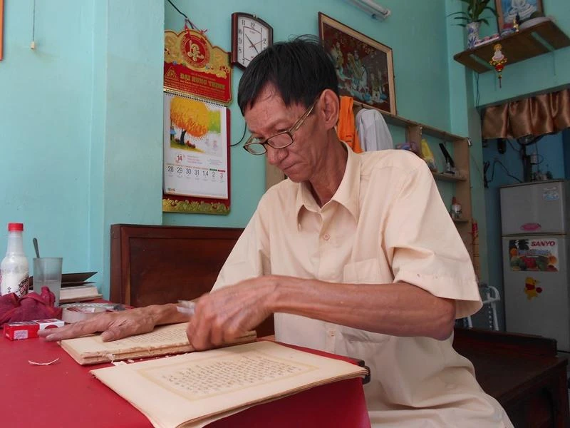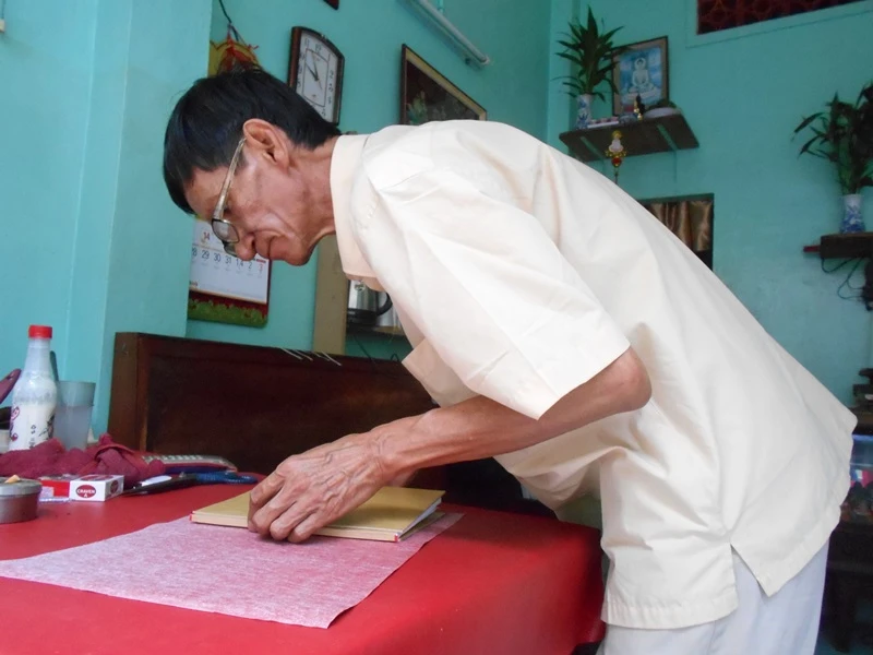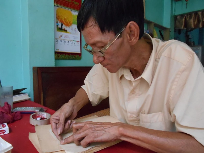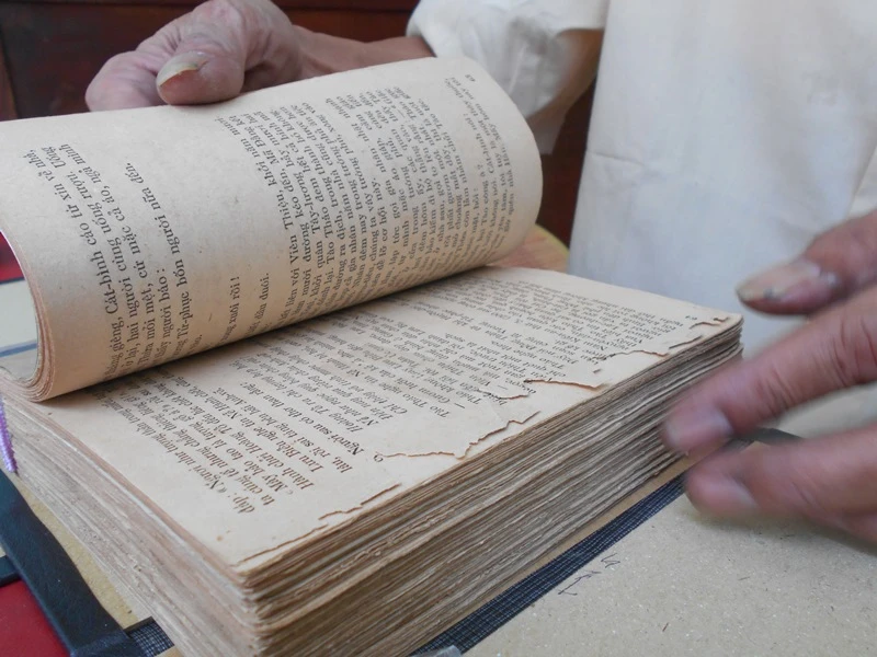 Có tận mắt nhìn thấy ông tỉ mẩn dùng kéo cắt từng đường chỉ, tháo rời từng trang rồi xếp chúng lại theo thứ tự, cắt từng miếng keo nhỏ để dán lại những trang sách bị mối mọt ăn mới cảm nhận hết tình yêu, sự say mê với sách của ông.