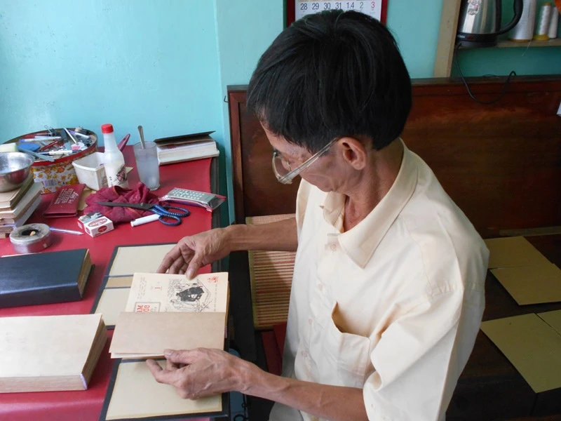 Mỗi khi làm xong, ông cứ xem đi xem lại coi thử đã chắc chắn hay chưa. Ông quan niệm, người ta yêu sách thì mình phải giúp họ lưu giữ được cuốn sách trên kệ, đó mới là hạnh phúc của ông