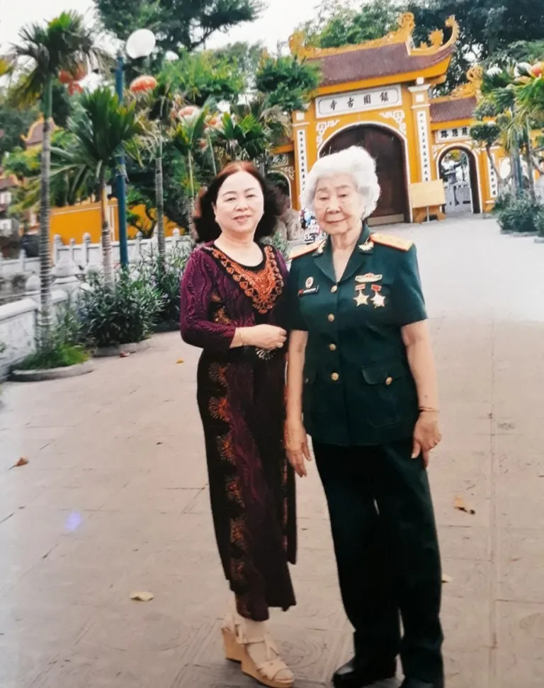 Bà Mã Thiện Đồng (trái) và nữ điệp viên Tám Thảo AHLLVTND, nhân vật viết trong cuốn sách "Bước ra từ thầm lặng." trong chuyến thăm Hà Nội ngày 23-4-2021. Ảnh: VT
