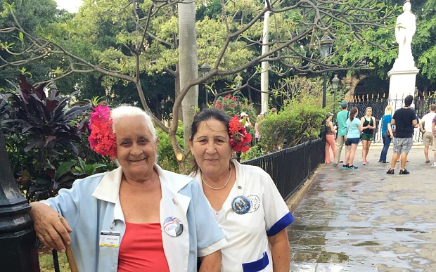 "Chúng tôi đã dọn dẹp quảng trường này trong suốt một tuần", Isabel Comaz Botellon, 78 tuổi cho biết. Bà cài hoa trên tóc và trên áo bà cài một huy hiệu với ảnh chân dung Tổng thống Mỹ.
