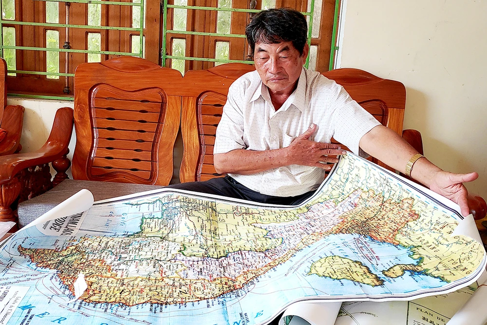 Ông Cảnh và tấm bản đồ lãnh thổ Việt Nam. Ảnh: T.AN