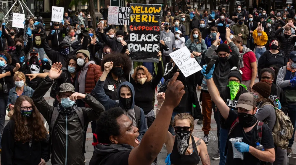 Người biểu tình ở Seattle, bang Washington phản đối vụ cảnh sát ghì chết người đàn ông da màu George Floyd. Ảnh: AFP