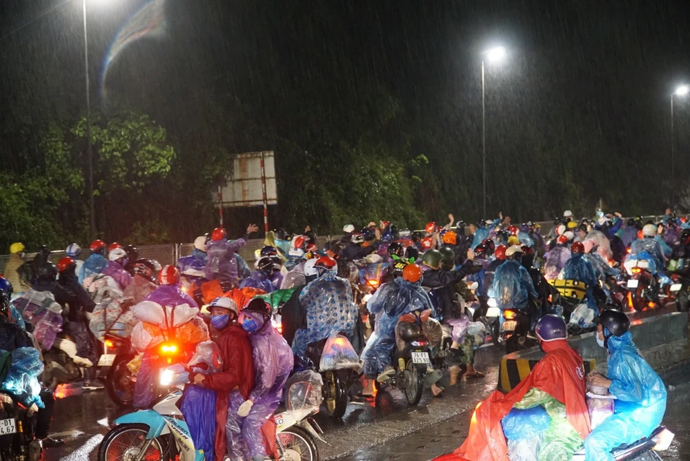 Nhiều cơn mưa nặng hạt khiến dòng người về quê gặp nhiều khó khăn. Ảnh: BÙI TOÀN