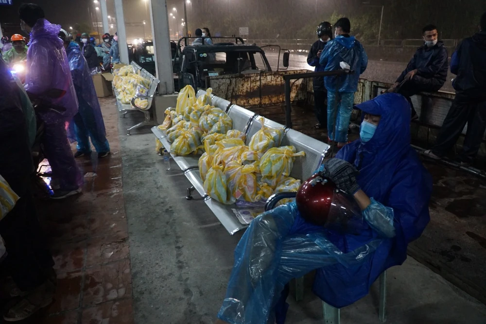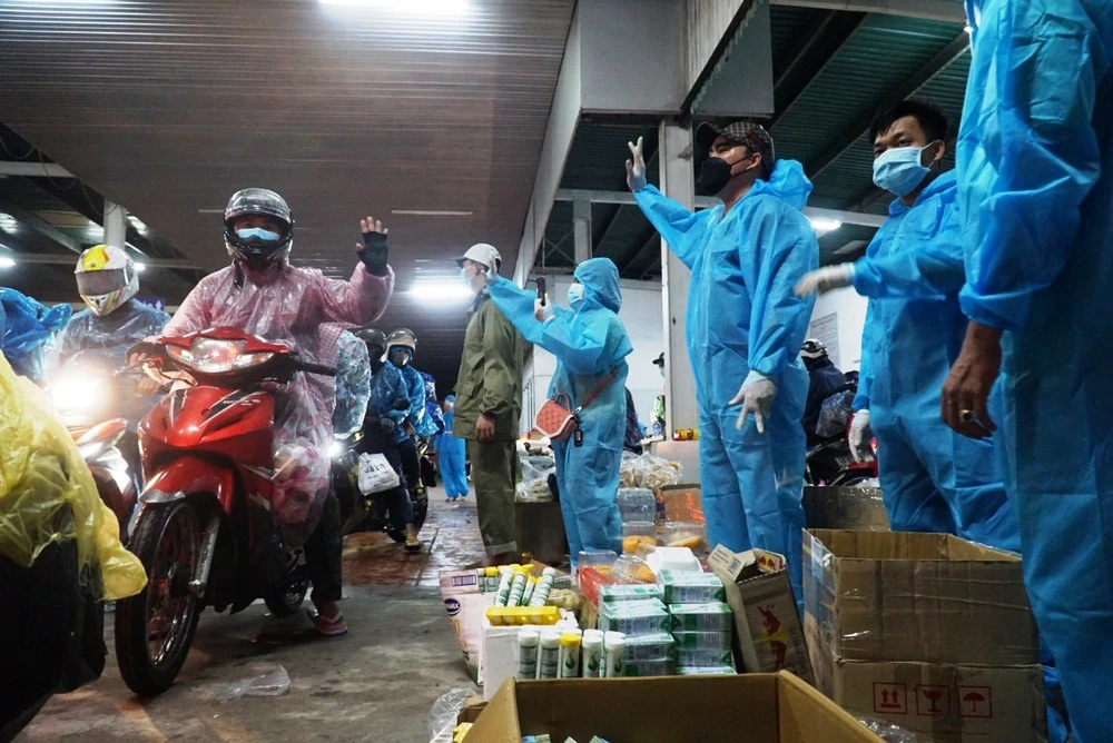 Những ngày qua, dòng người từ các tỉnh phía Nam đi xe máy, đi bộ về quê liên tục. Trên đường đi, họ được giúp sức của những người dân hai bên đường từ ăn uống, xăng đến sửa xe miễn phí để hành trình khó khăn này giảm bớt nhọc nhằn. Nhiều người Đà Nẵng đã ngủ lại trên đèo, chờ từng đoàn người về để tiếp từng tô súp, cháo nóng. Những tình nguyện viên, gồm tình nguyện viên y tế vẫn luôn túc trực để hỗ trợ sức khỏe cho những người bị nạn. Ảnh: BÙI TOÀN