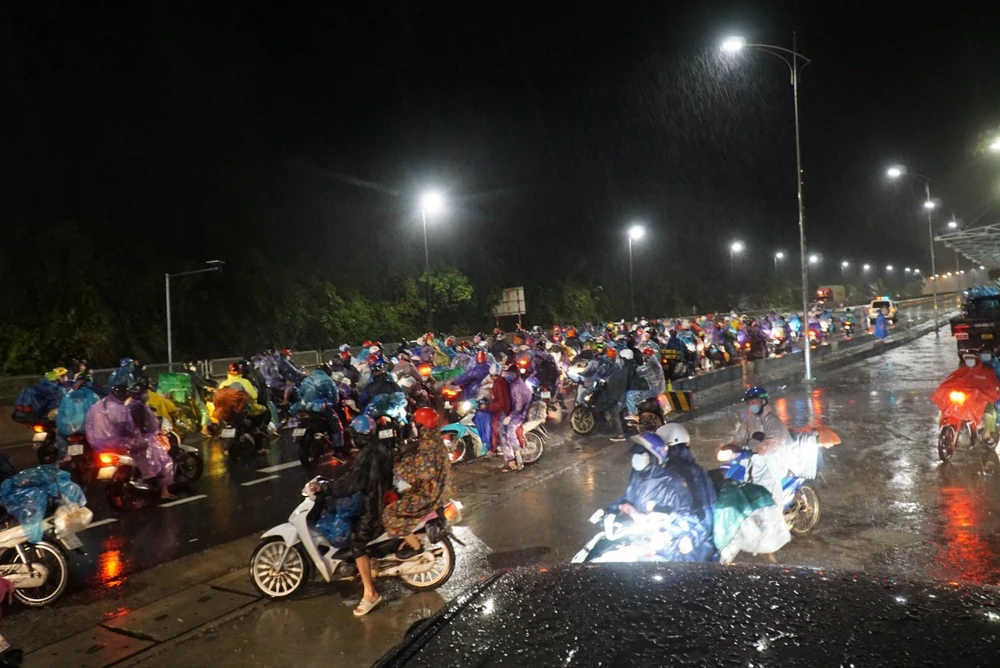 Ngày 7-10, do ảnh hưởng áp thấp nhiệt đới nên lượng mưa ở miền Trung lớn. Nhiều cơn mưa nặng hạt liên tục đổ xuống khiến hành trình của hàng ngàn bà con ở TP.HCM, Đồng Nai, Bình Dương về quê thêm khó khăn.