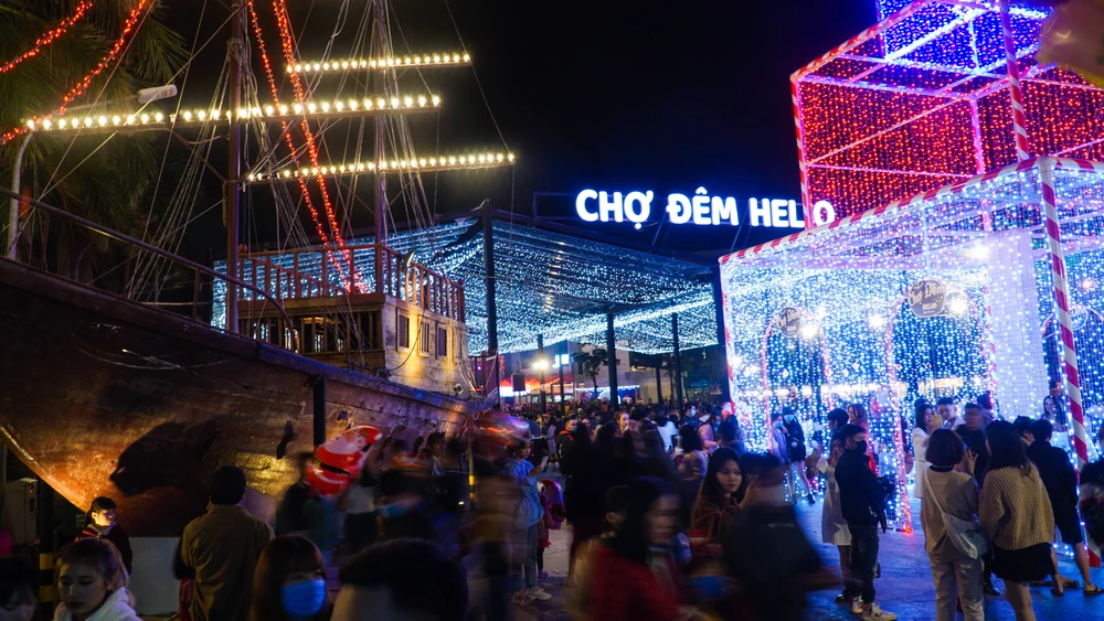Theo ghi nhận của PLO, thời tiết Đà Nẵng bắt đầu ấm; tại chợ đêm Helio, hàng trăm du khách và người dân có mặt để vui chơi, ăn uống.