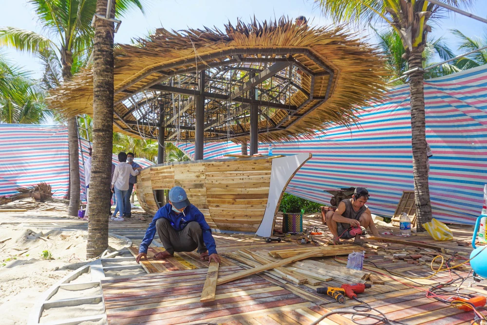 Những ngày qua, các chủ cơ sở kinh doanh, dịch vụ ven biển ở quận Sơn Trà, quận Ngũ Hành Sơn (TP Đà Nẵng) đang huy động thêm nhân công để khẩn trương lau dọn, lắp đặt các hệ thống đèn trang trí, bàn ghế chuẩn bị đón khách quốc tế.