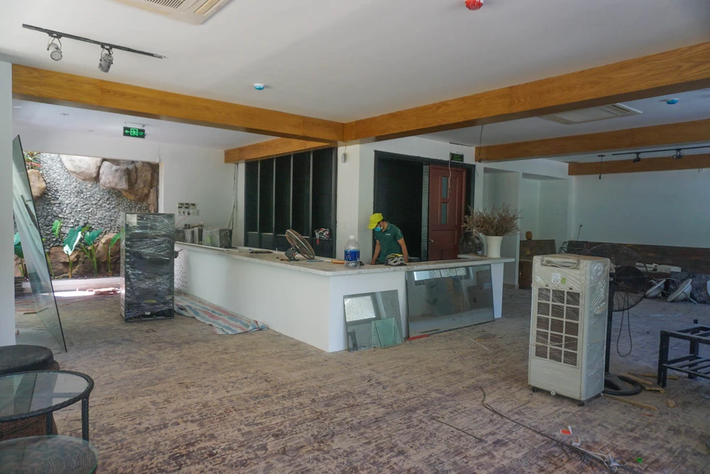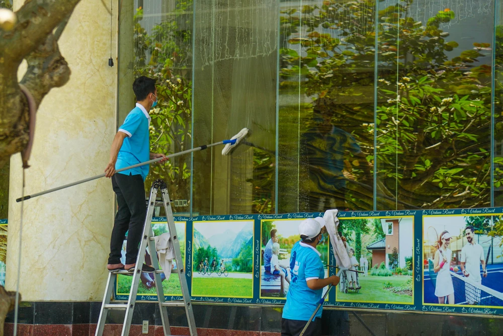 Lau dọn khách sạn, chuẩn bị mở cửa đón khách. Ảnh: BT.