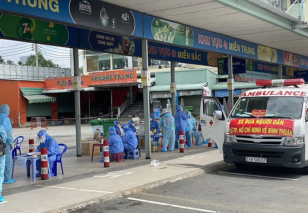 300 người dân Bình Thuận đến Bến xe Miền Đông làm thủ tục sáng 14-8 để chuẩn bị được đưa từ TPHCM về Bình Thuận.