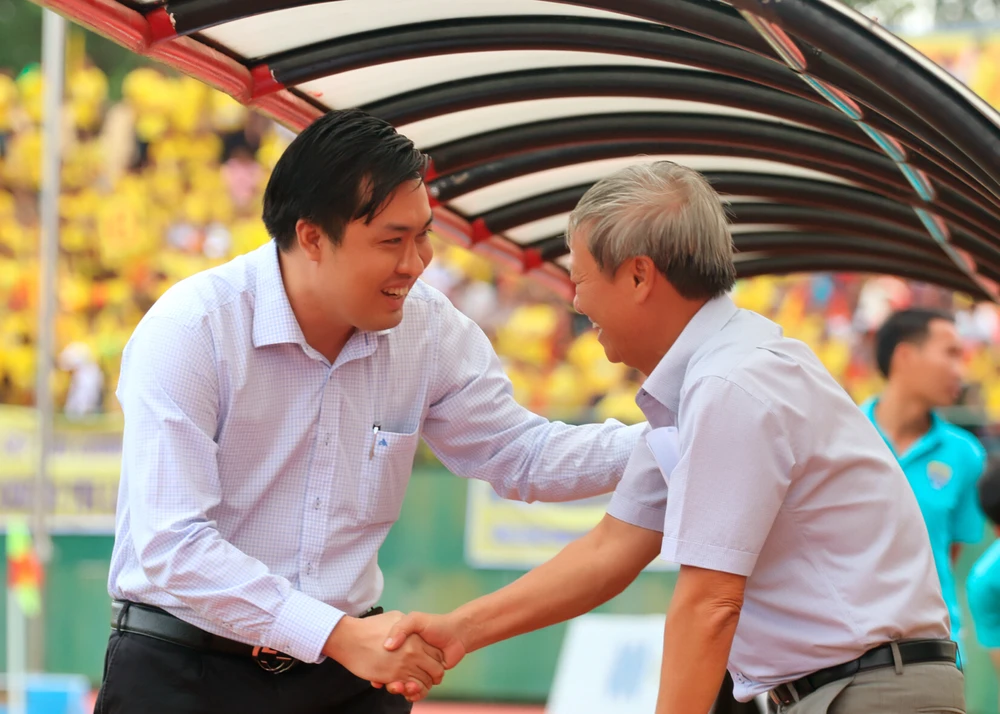 HLV Lê Thụy Hải trong những ngày còn làm bóng đá sôi nổi với Phó chủ tịch VFF Cao Văn Chóng. Ảnh: XUÂN HUY.