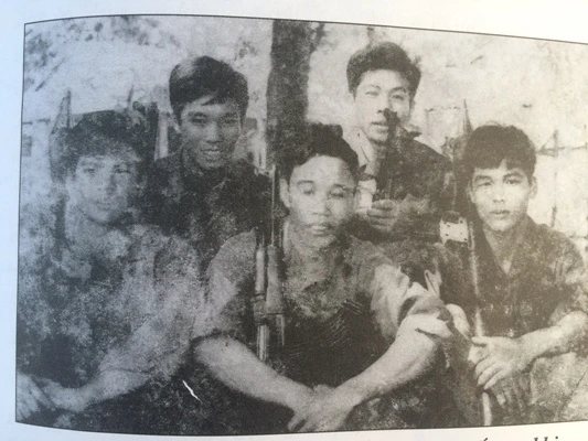 Ông Nguyễn Đức Thọ (ngoài cùng bên trái) cùng đồng đội sau trận chiến cầu Rạch Chiếc. Ảnh: Tư liệu