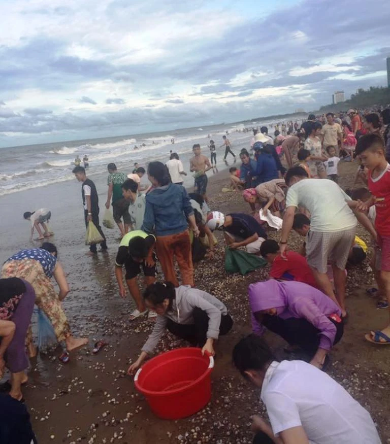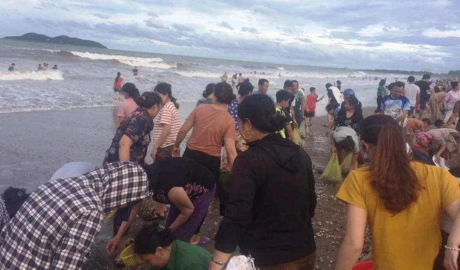 Rất đông du khách và người dân ở thị xã Cửa Lò đã mang các dụng cụ ra nhặt sò huyết, ngao để mang về chế biến món ăn, những người khác thì mang ra chợ bán.