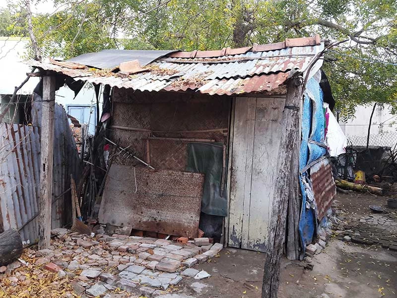 Ngôi nhà lụp xụp của chị Ngọc Hâng. Ảnh: THANH SƠN