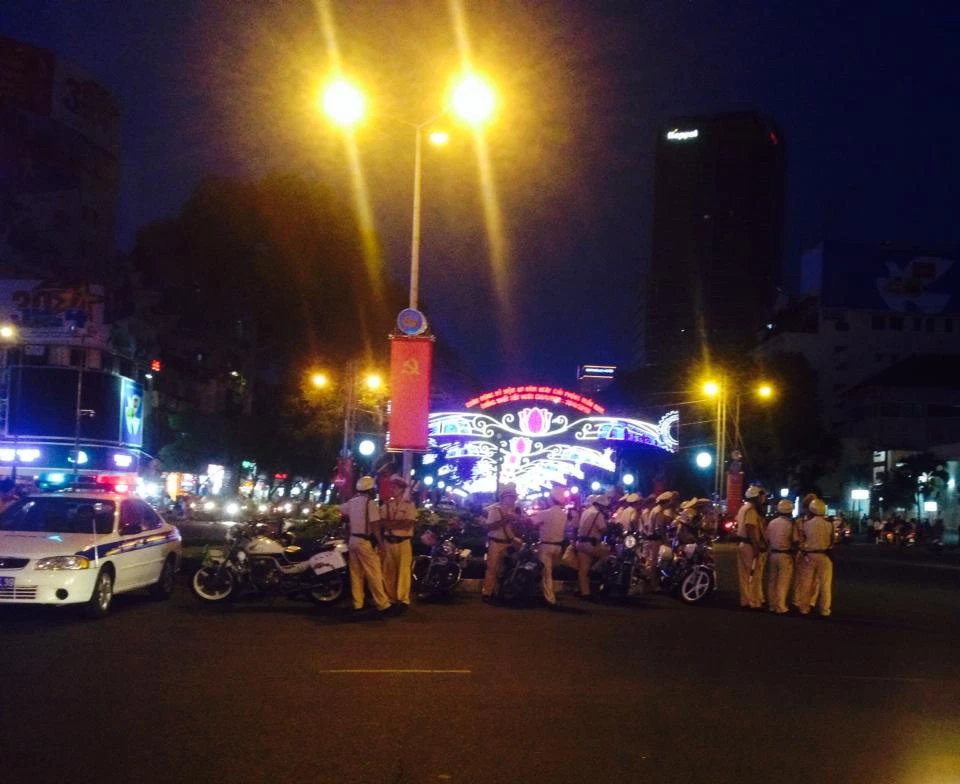 Rất đông CSGT đã tập trung tại khu vực này để làm nhiệm vụ.