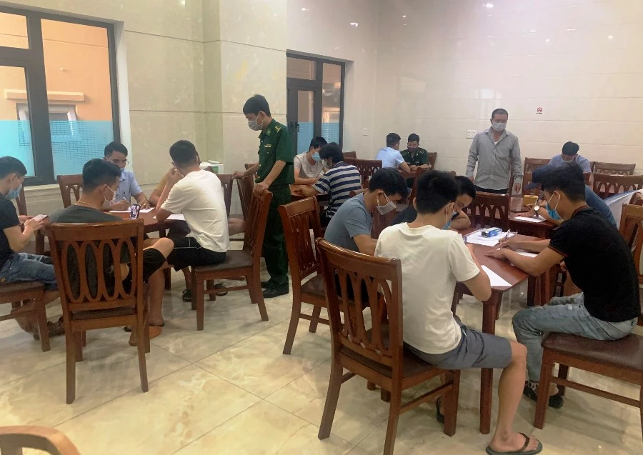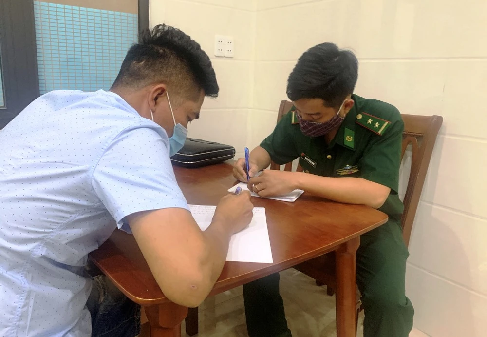Lực lượng Bộ đội Biên phòng lấy lời khai những người bị lừa xuất cảnh. Ảnh: H.H