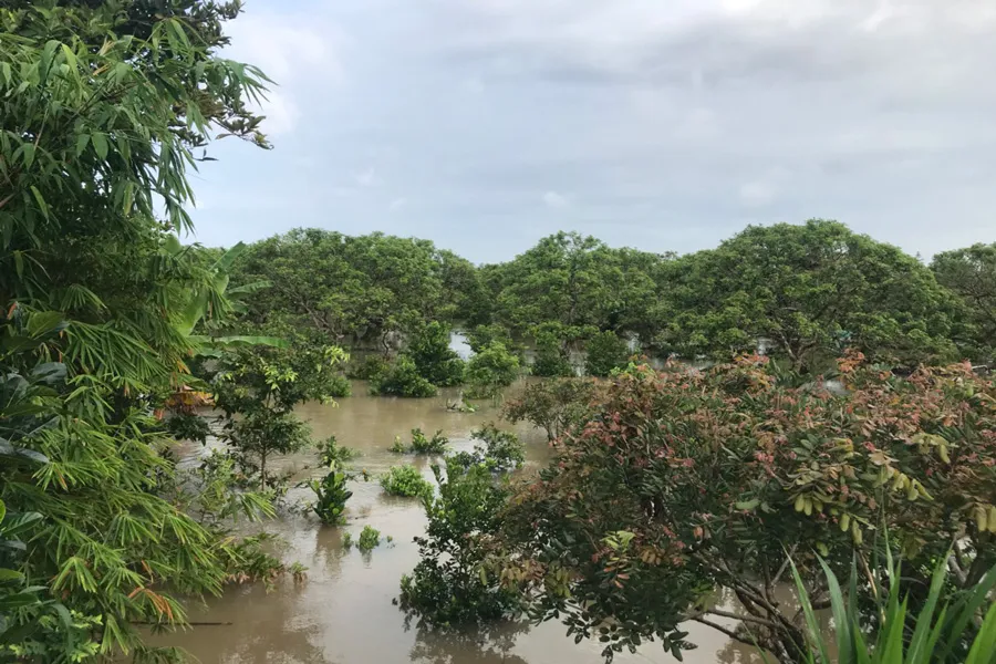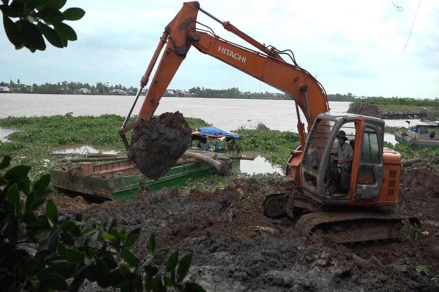 Ngoài ra sạt lở đã làm nước từ sông lớn tràn vào đã gây ngập khoảng 12ha cây ăn trái của 14 hộ dân trong khu vực.