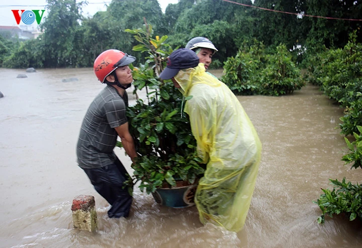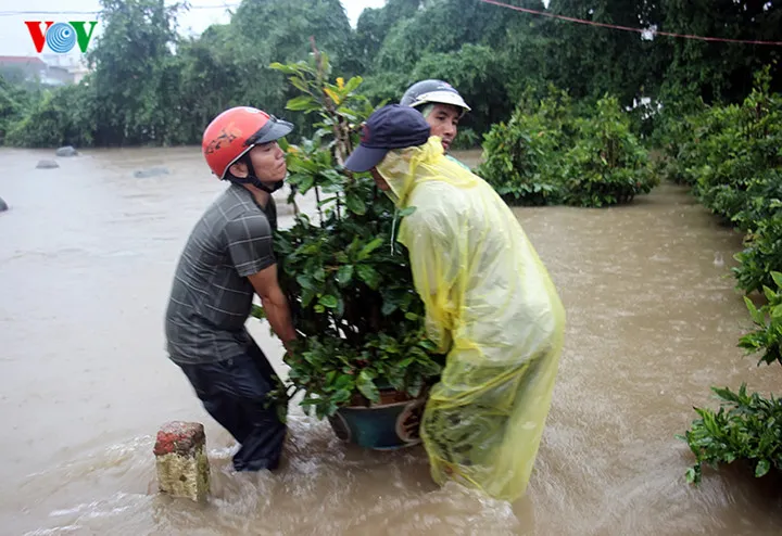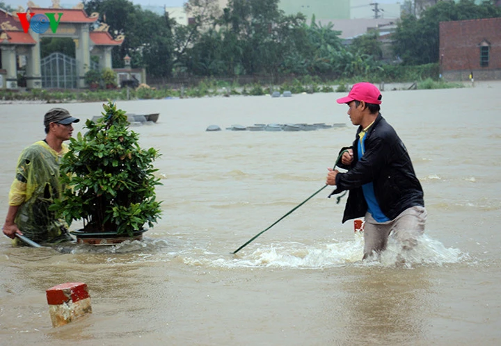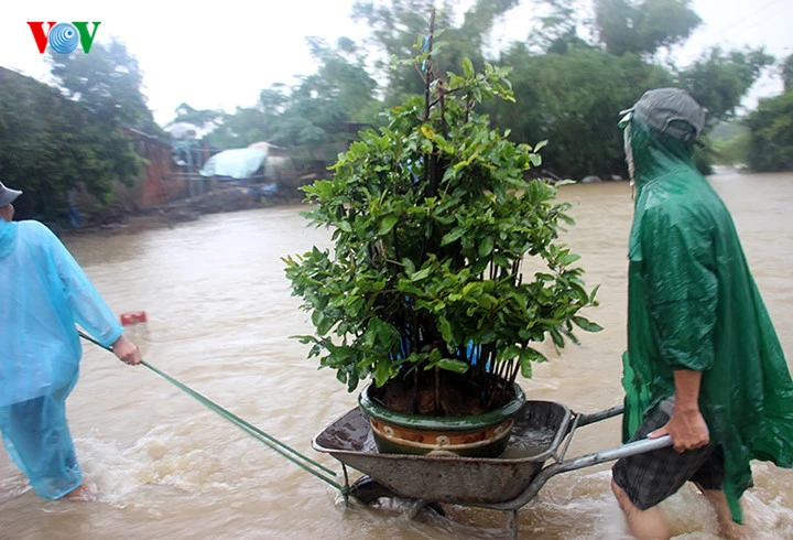 Ông Hồ Văn Ảnh, thôn Thanh Liêm cho biết: “Nước lũ lên từ 2 giờ sáng với tốc độ rất nhanh, khiến 200 gốc mai đang chờ dịp Tết chìm trong nước. Rất cố gắng nhưng chúng tôi trở tay không kịp. Thiệt hại ban đầu ước tính gần 100 triệu đồng”.