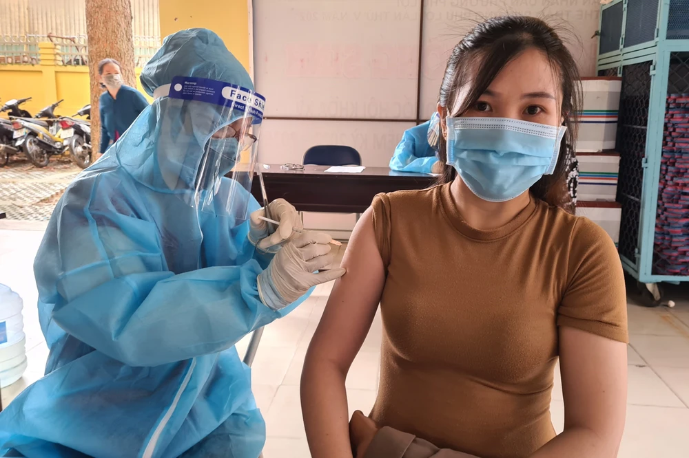 Còn tại phường Tương Bình Hiệp, mọi người cũng đến tiêm vaccine, dù biết trước đó là vaccine do Trung Quốc sản xuất.