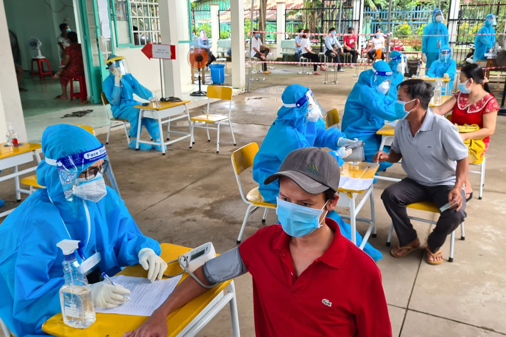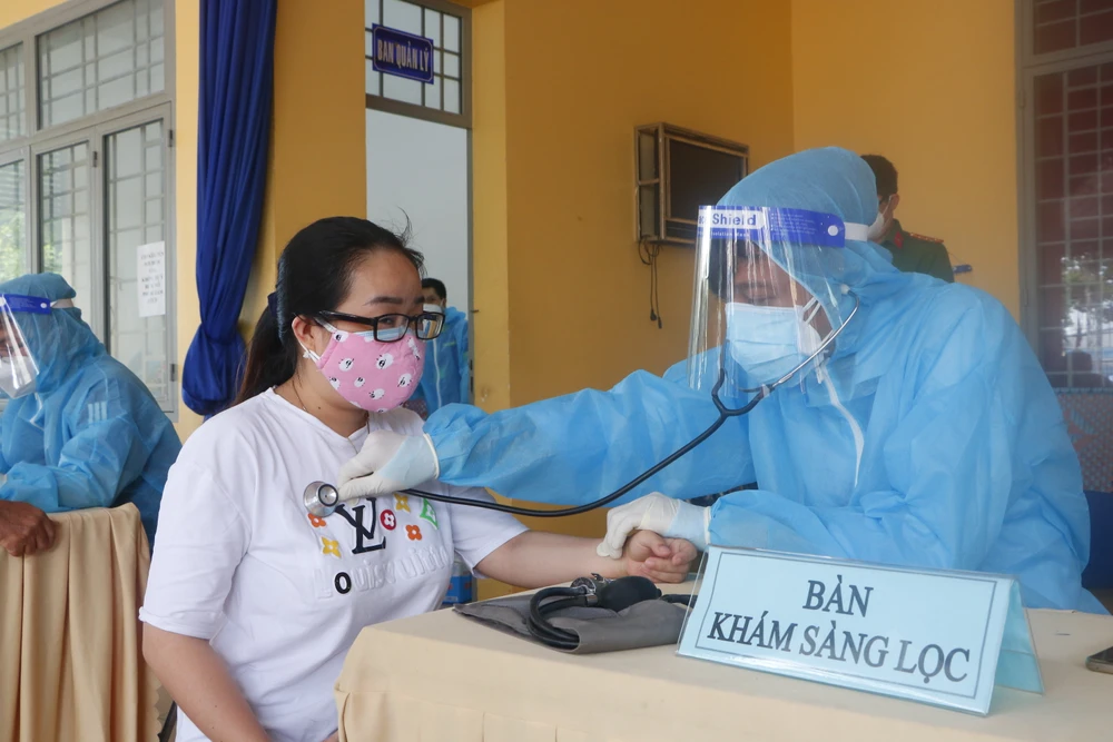 Mọi người đều được khám sàng lọc cẩn thân trước khi vào tiêm. Ảnh: LÊ ÁNH