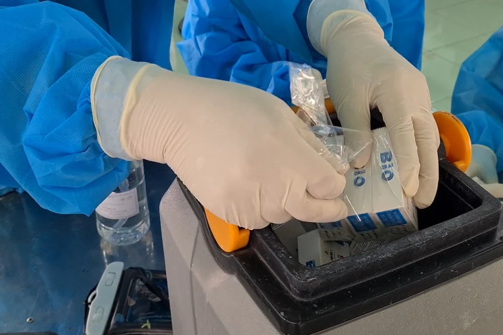 Vaccine Vero Cell của Sinopharm được bỏ vào thùng bảo quản. Ảnh: LÊ ÁNH