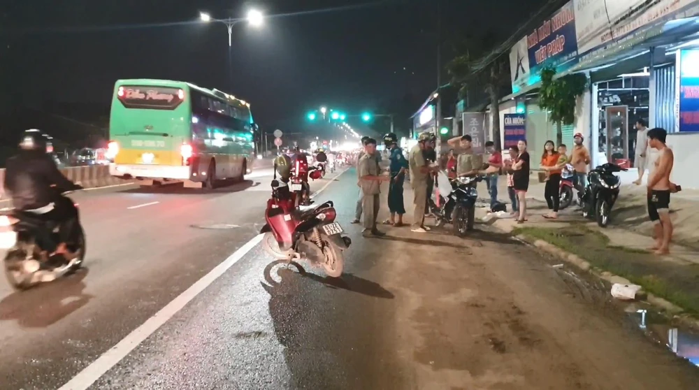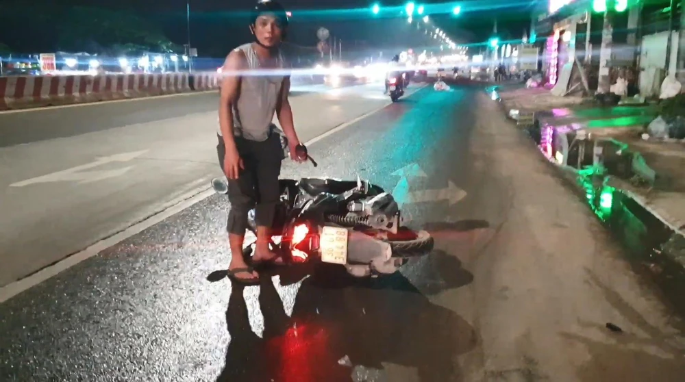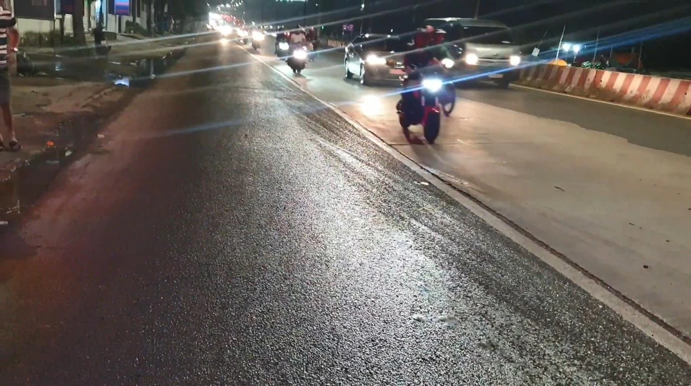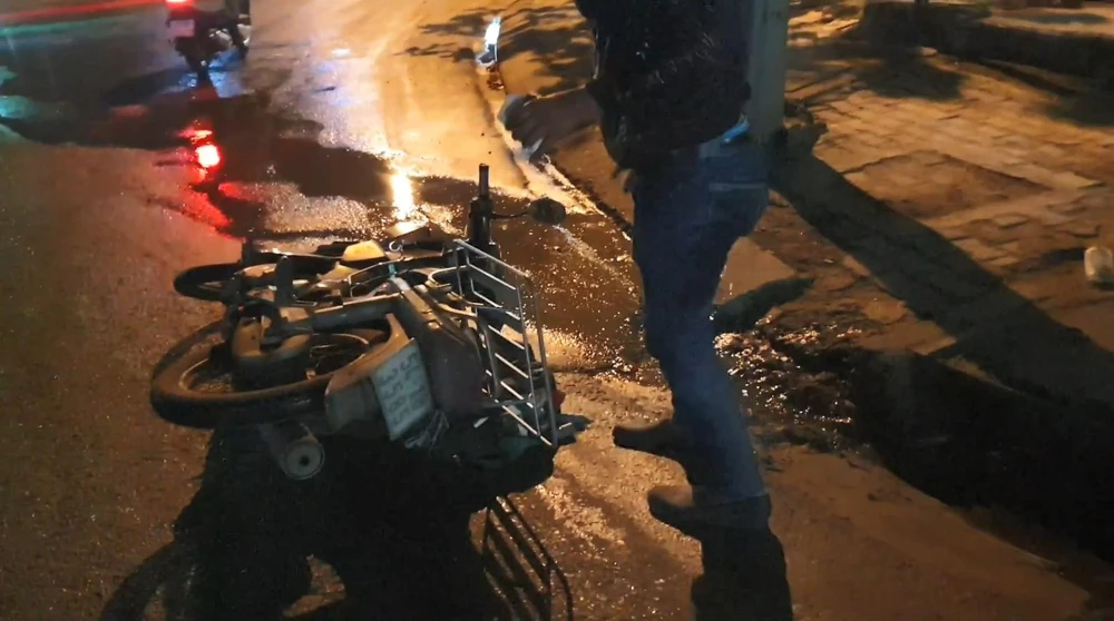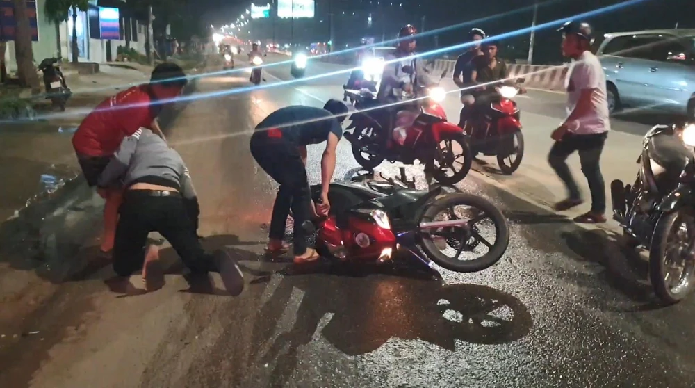 Đến khoảng 21 giờ 30 ngày 22-10, rất nhiều người đi xe máy lưu thông trên đại lộ Bình Dương tiếp tục bị té ngã vì vệt nhớt dài trên đường. Thế nhưng các đơn vị chức năng không có mặt để khắc phục.