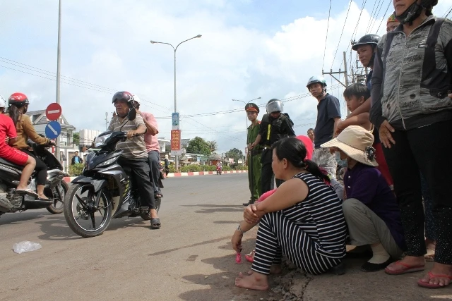 Mặc cho nắng gắt, cả trăm người vẫn nán lại đến trưa với mục đích có thể tận mắt nhìn thấy các nghi can.