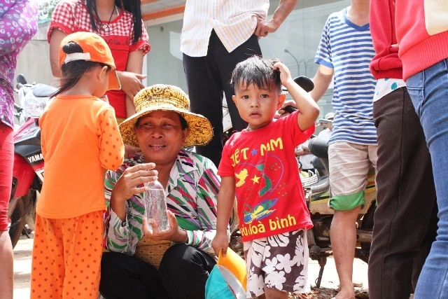 Cậu bé nhỏ tuổi cũng tham gia với đám đông hiếu kỳ.