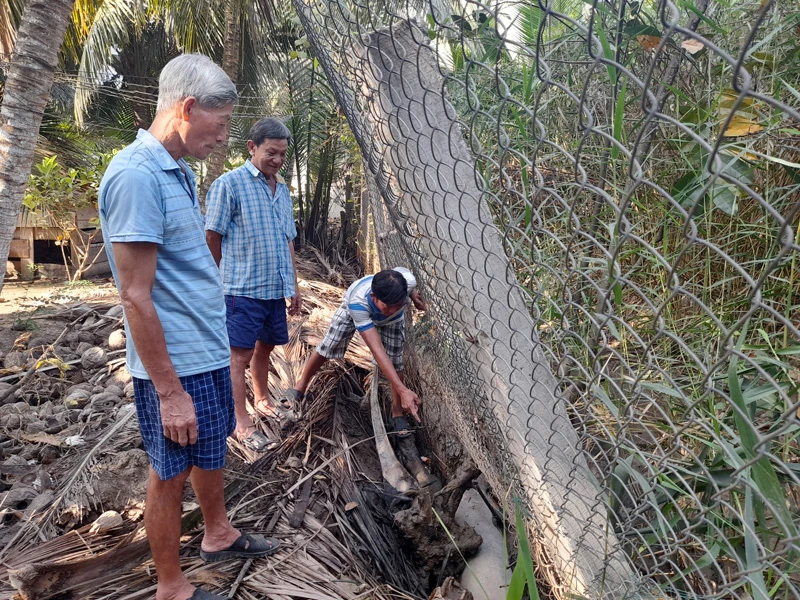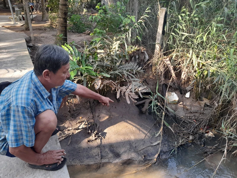 Ông Huỳnh Ngọc Thành, người dân ấp Hòa An, xã Giao Long than thở: “Nước dưới kênh đen ngòm tôi không dám bơm lên để tưới vườn dừa. Nước còn có mùi hôi khó chịu, ô nhiễm quá nên dân yêu cầu địa phương xả cống để xả nước thải ra. Xả cống, nước ô nhiễm đã thoát hết ra sông lớn nhưng nước mặn đã xâm nhập vào cũng không thể nào tưới cho vườn cây được”.