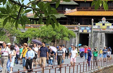 Rất đông du khách chọn các di tích thuộc quần thể di tích cố đô Huế để tham quan vào ngày lễ 2-9. Ảnh: ND