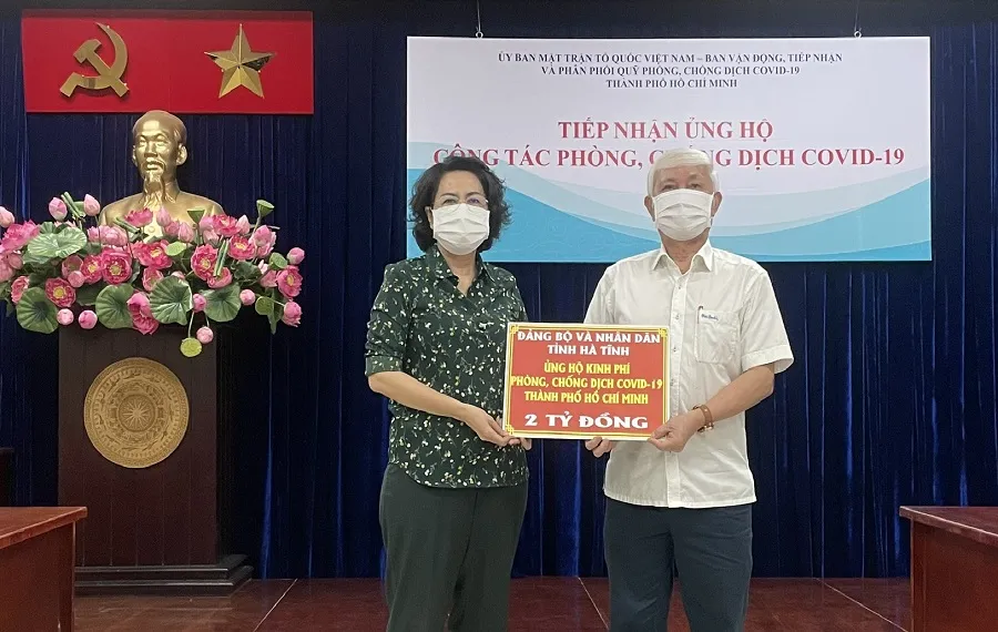 Sáng 9-7, ông Phan Xuân Biên, nguyên Trưởng Ban Tư tưởng - Văn hóa Thành ủy TP.HCM được ủy quyền đại diện Đảng bộ, Nhân dân tỉnh Hà Tĩnh đã trao 2 tỉ đồng đến người dân TP.HCM thông qua Ủy ban MTTQ Việt Nam TP.HCM, nhằm ủng hộ cho công tác phòng, chống dịch COVID-19 tại TP.HCM.