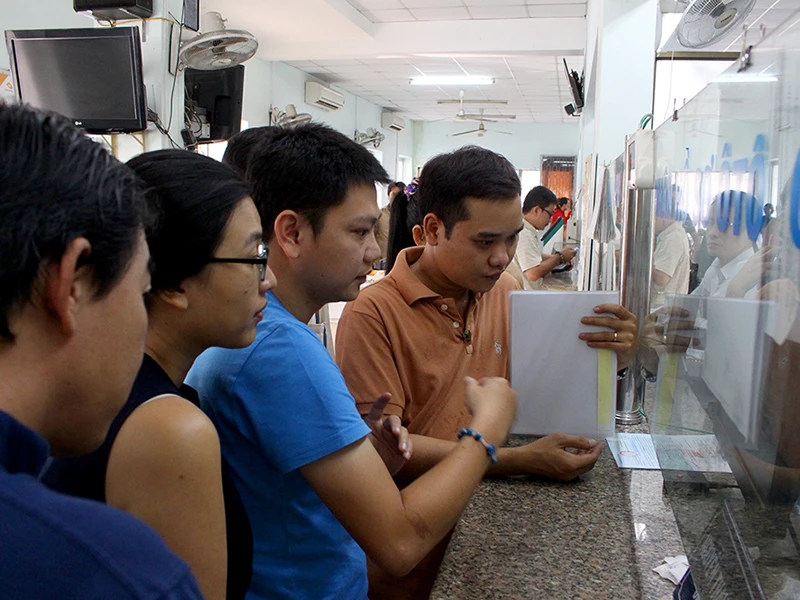 Sau khi đăng ký trên mạng, người dân mang hồ sơ đến sẽ cùng cán bộ kiểm tra lại thông tin qua màn hình máy tính. Ảnh: LÊ THOA