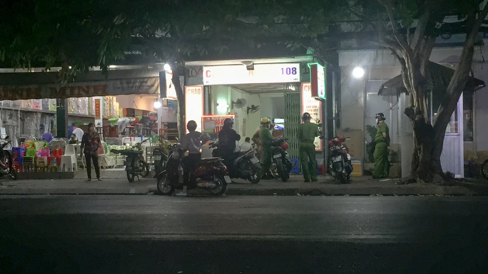 Một quán ăn trên đường Lý Tự Trọng mở cửa bán cho khách bị lực lượng chức năng nhắc nhở.