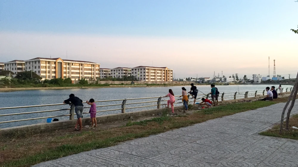 Chiều cùng ngày, ghi nhận tại bờ hồ Búng Xáng, nhiều người vẫn tụ tập để hóng mát, câu cá.