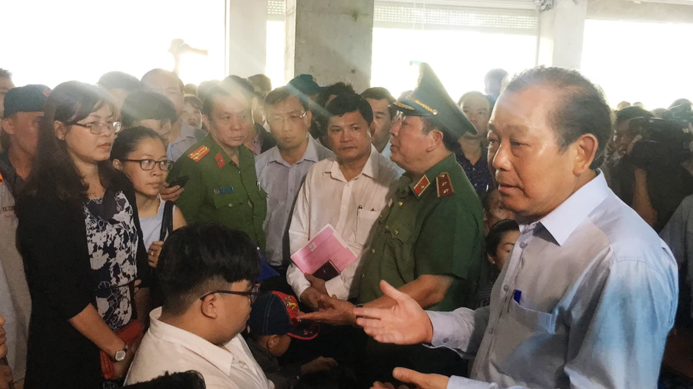Phó Thủ tướng lập tức yêu cầu UBND phường, quận, chủ đầu tư phải lập một bộ phận thường trực ở đây để có sự gắn bó, lắng nghe và có những biện pháp giải quyết cho bà con. Trách nhiệm giao cho TP, UBND quận giải quyết.