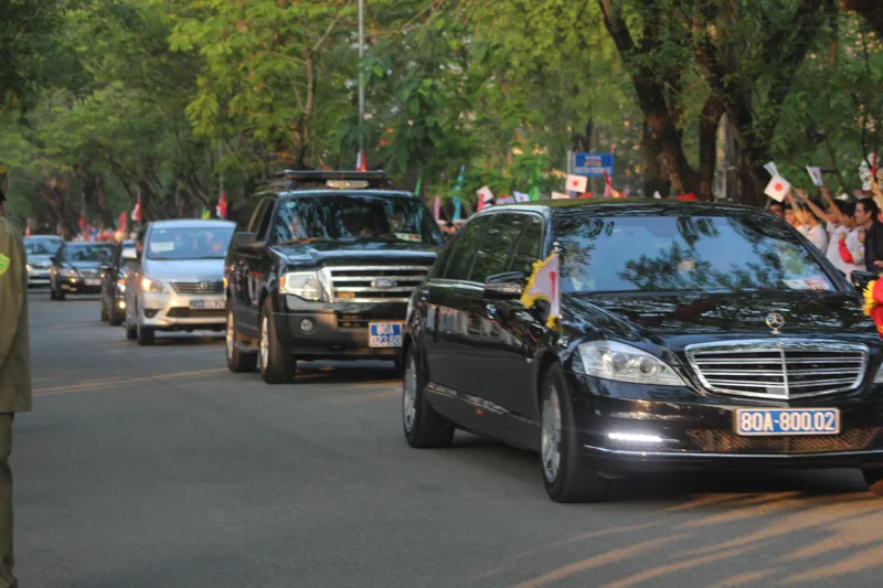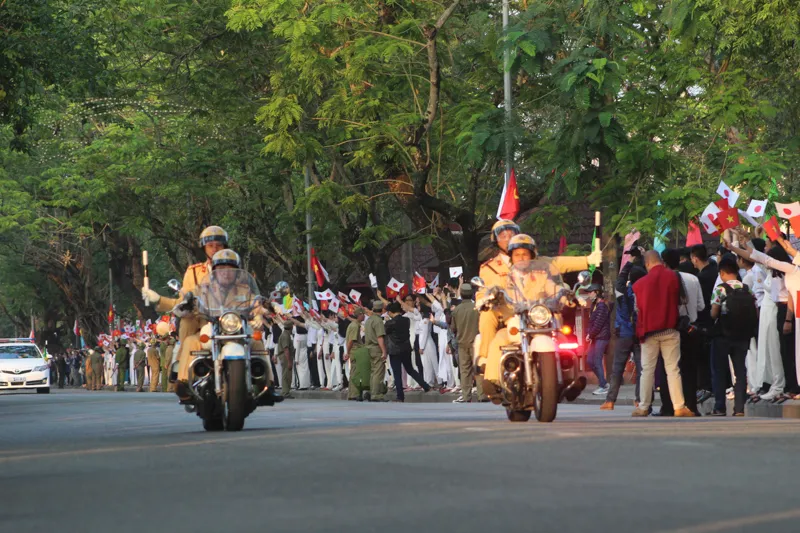 Hơn 17 giờ, Nhà vua và Hoàng hậu đang di chuyển đến đường Lê Lợi. Ảnh: NGUYỄN DO