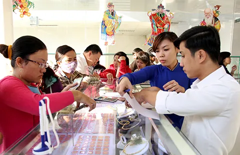Tại một cửa hàng vàng thuộc Công ty Vàng bạc đá quý Phú Nhuận (PNJ) trên đường Nguyễn Văn Trỗi (quận 3) cũng có hàng trăm khách hàng mua vàng nhẫn, vàng miếng. Nhiều người phải chờ đợi hơn 30 phút mới nhận được hàng. Ở các khu phố mua bán vàng như chợ Tân Định, chợ Bến Thành (quận 1), chợ An Đông (quận 5)… các tiệm vàng đều mở cửa sớm hơn so với ngày bình thường. Khách hàng đứng chen chân chờ đến lượt mình.